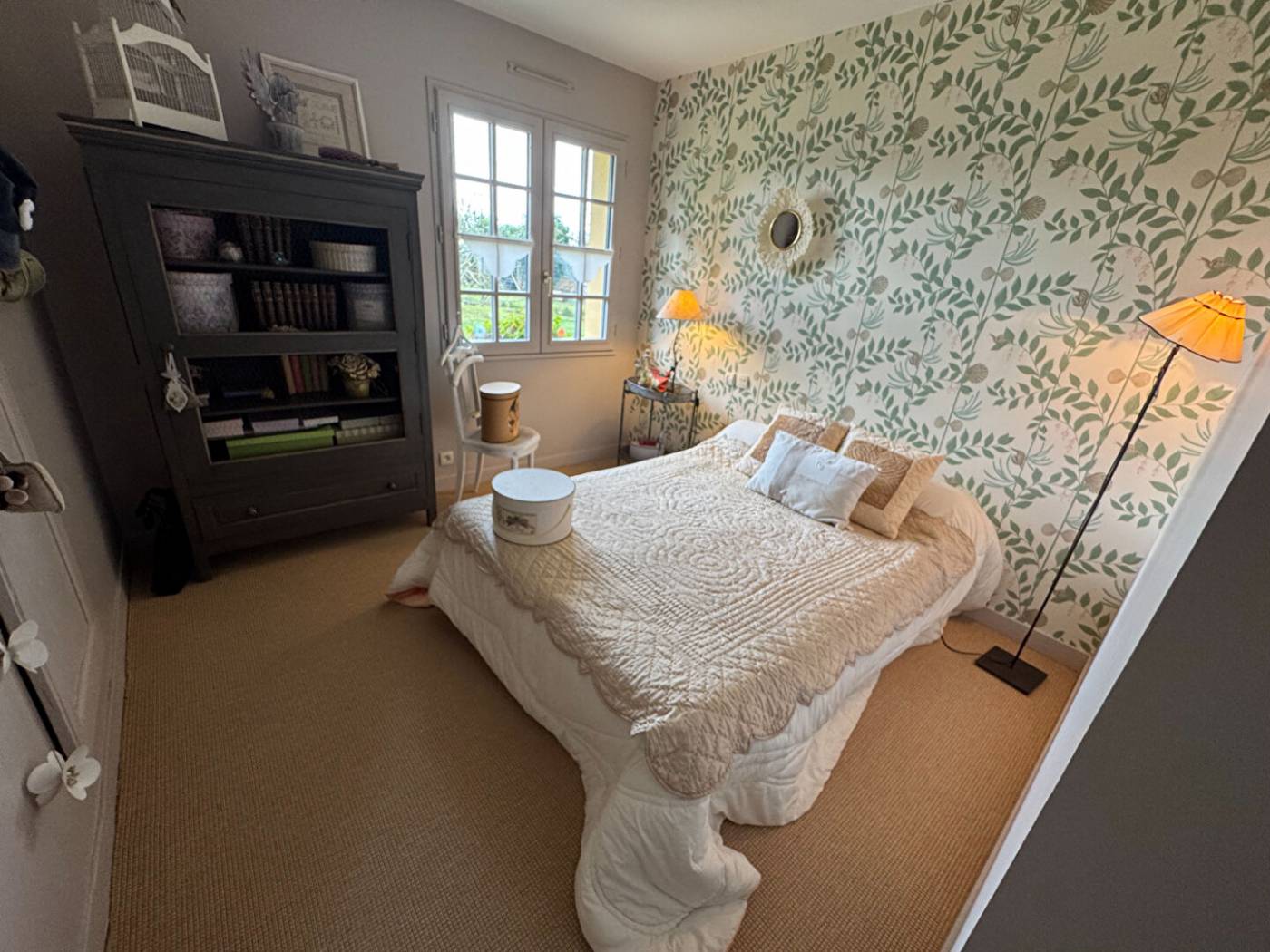 Superbe chaumière contemporaine de 2002 de 182 m2 (sur 2 niveaux - 230,66 m2 utiles) sur parcelle de 1335 m2 - 4 chambres dont 2 de plain pied - Salon de 38 m2 avec terrasse Ouest - Cuisine à l'ancienne aménagée et équipée avec cheminée et espace salle à manger - 2 salle de bains - 1 salle d'eau - 2 wc - Arrière cuisine - Garage double - Cabanon de jardin