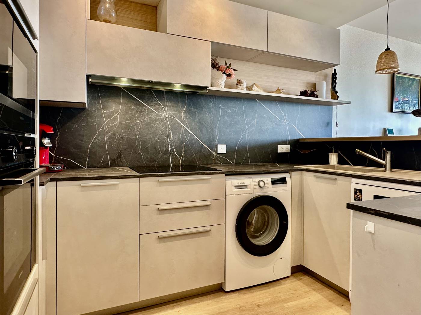 La pièce de vie lumineuse s’ouvre sur une grande terrasse aménagée, offrant une vue imprenable sur l’océan. La cuisine semi-ouverte est entièrement équipée : plaques induction, four, micro-ondes, Senséo, lave-vaisselle, lave-linge, réfrigérateur/congélateur, SodaStream…