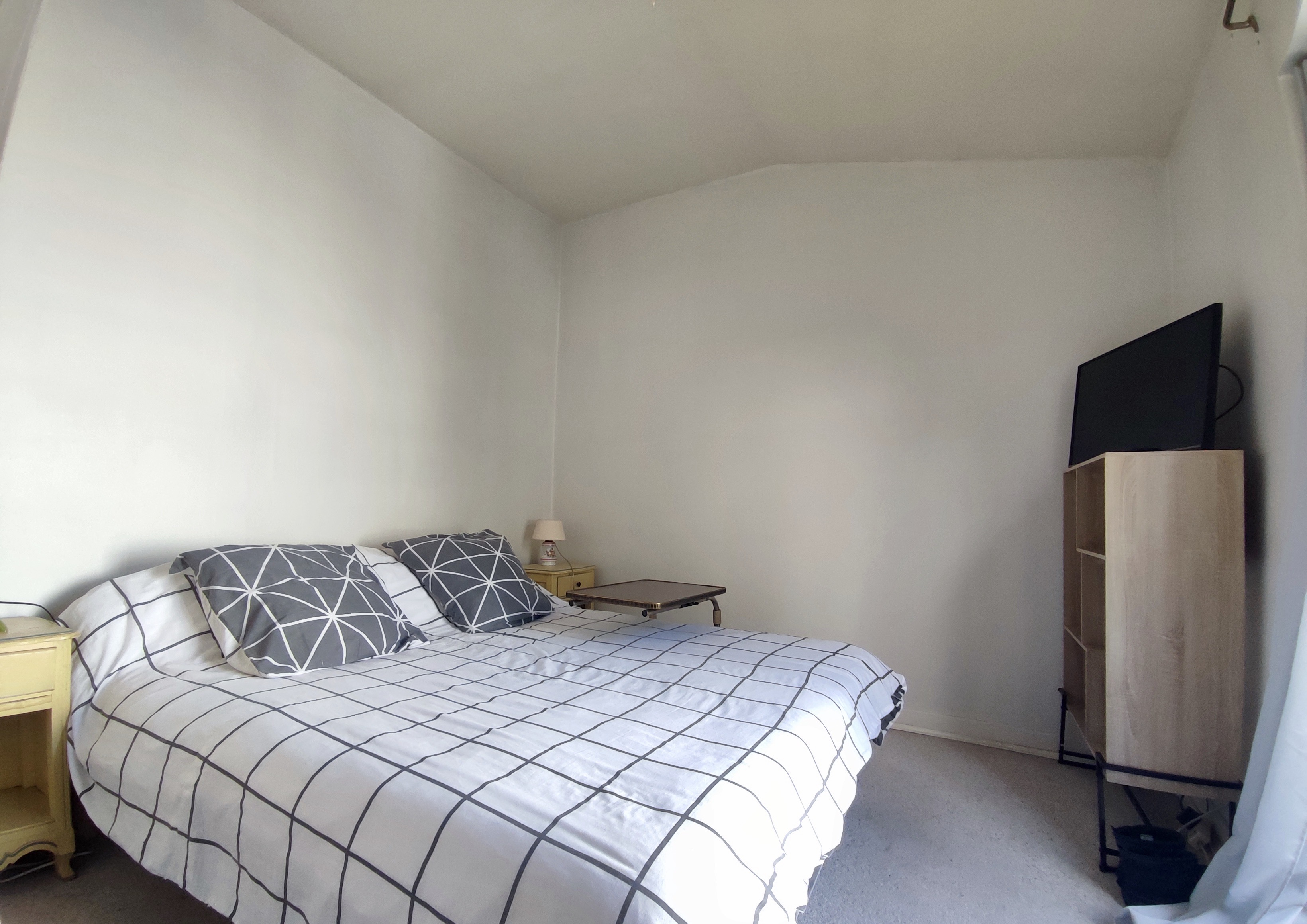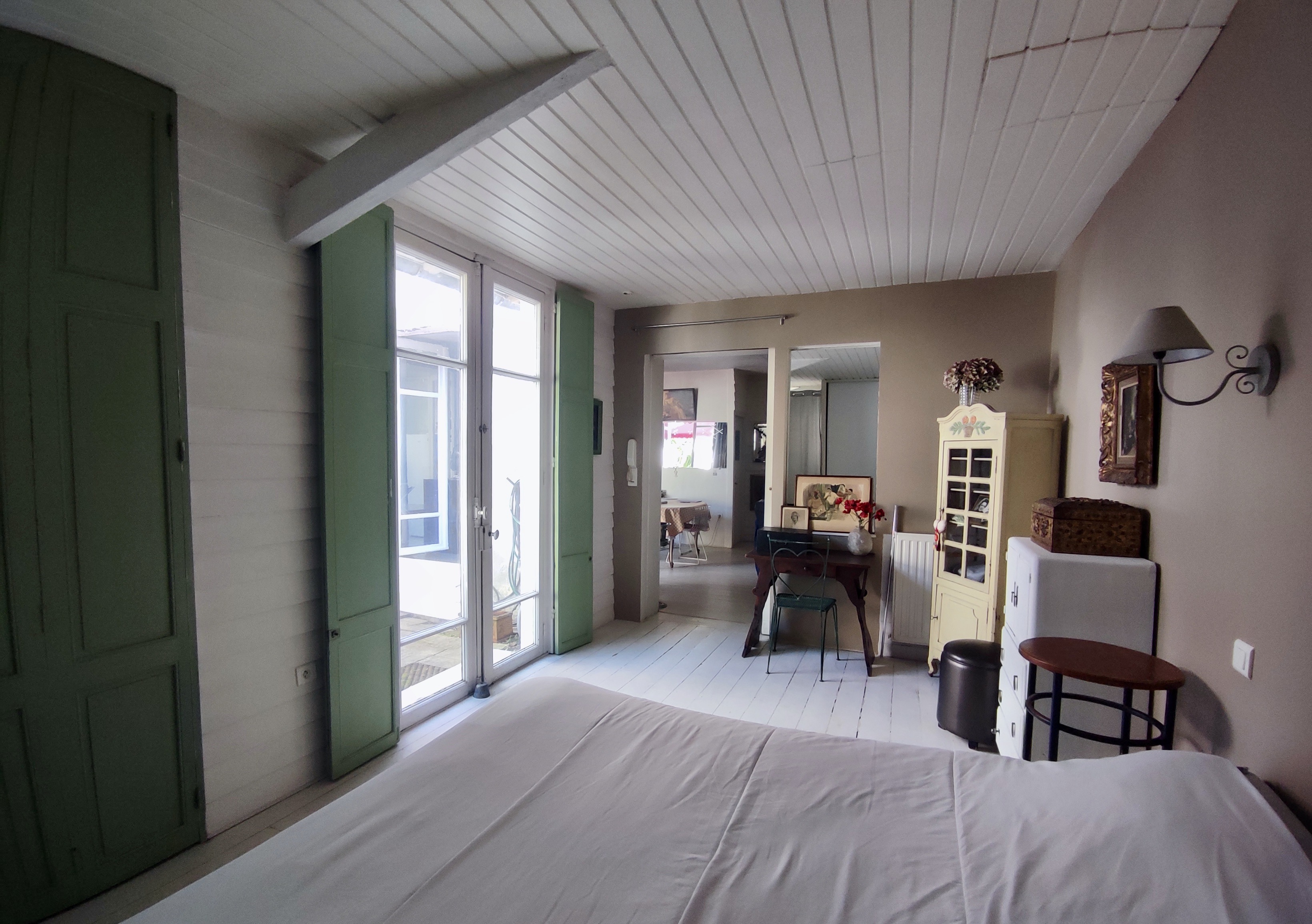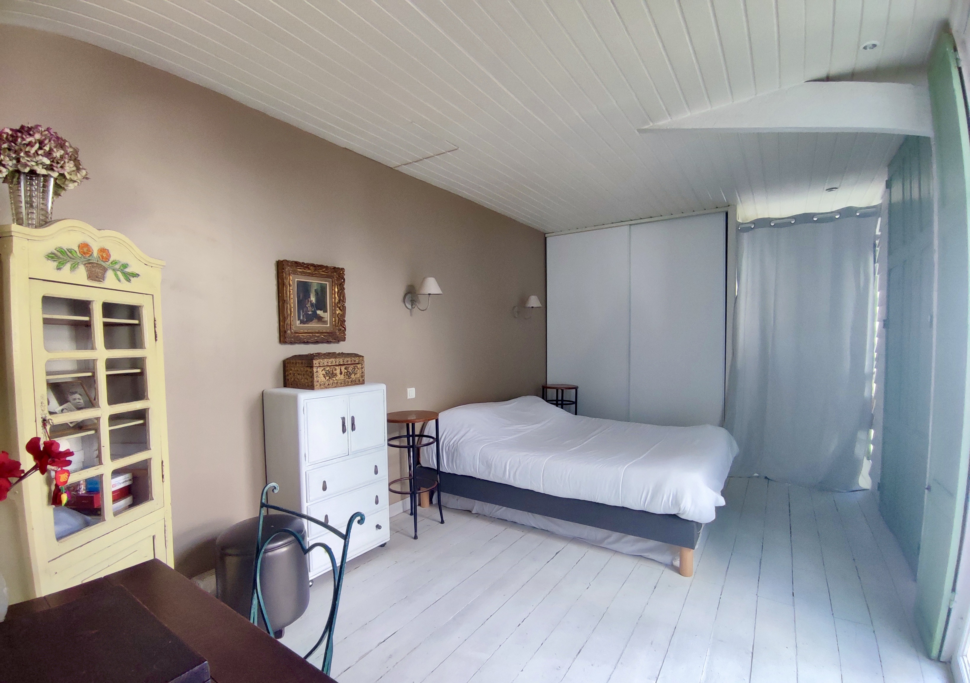 Chambre 1 : Lit 160x190, bureau, placard, avec accès direct au jardin.