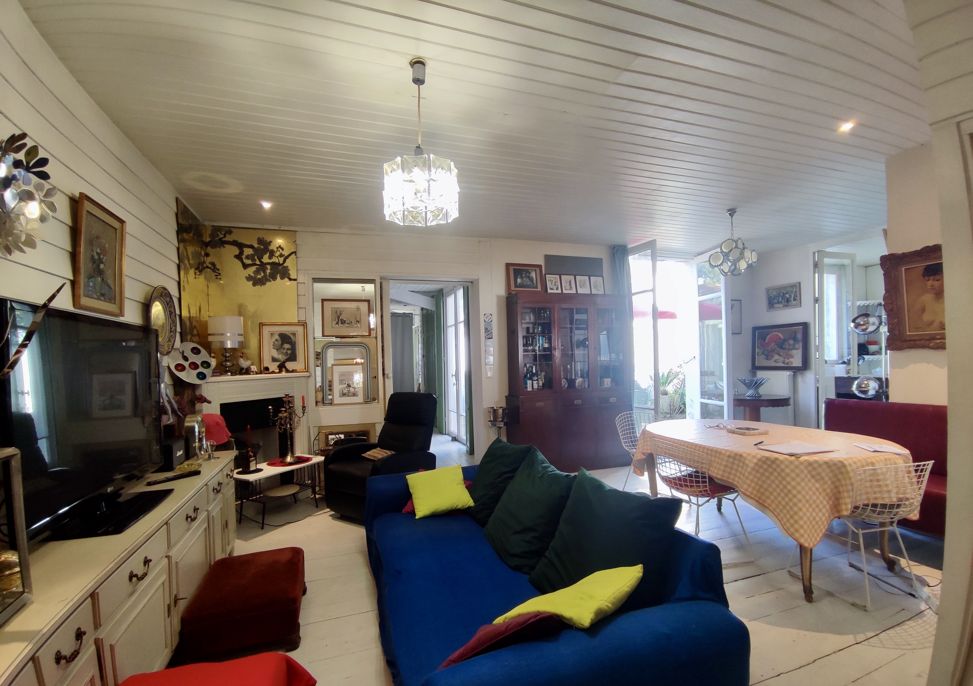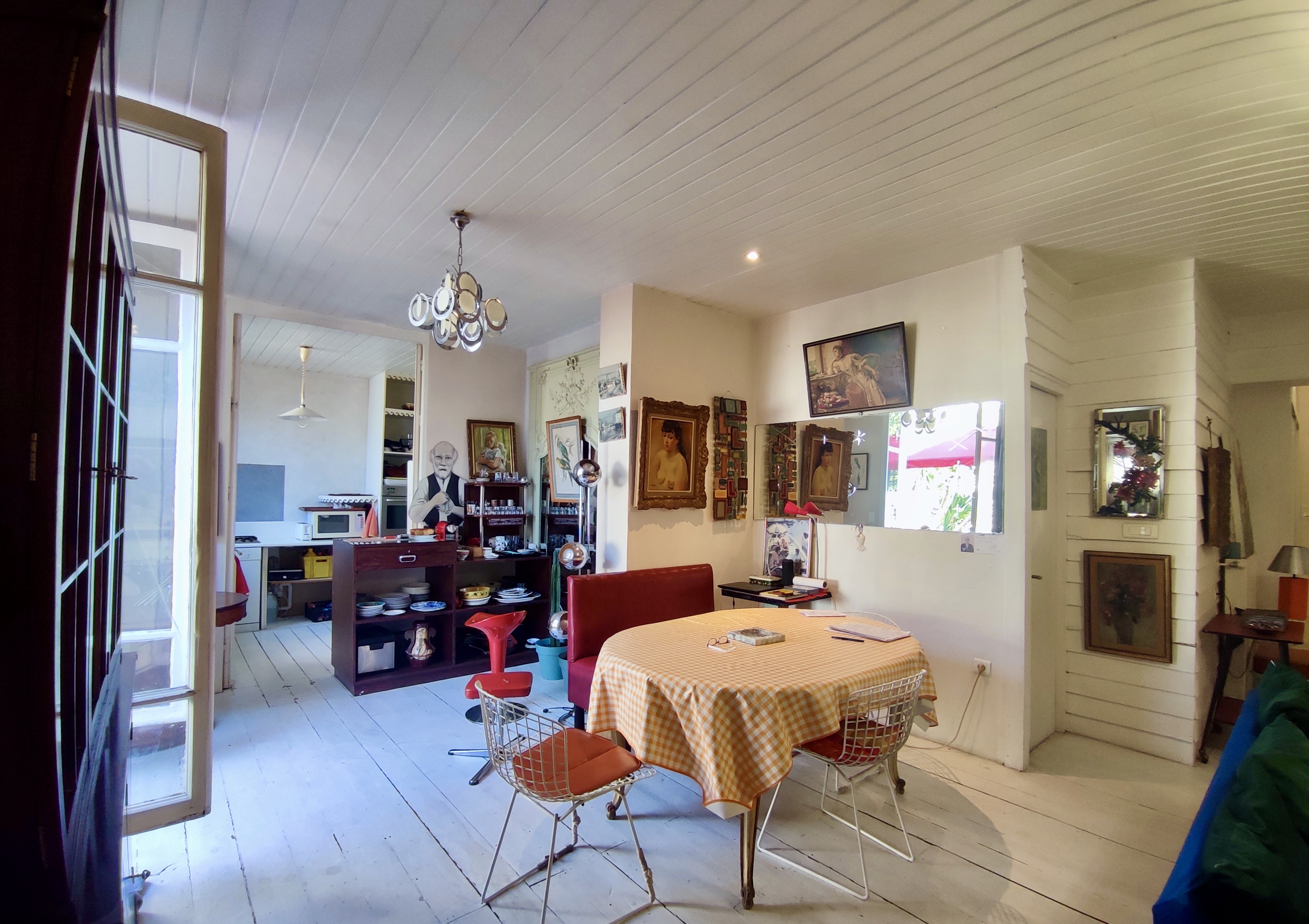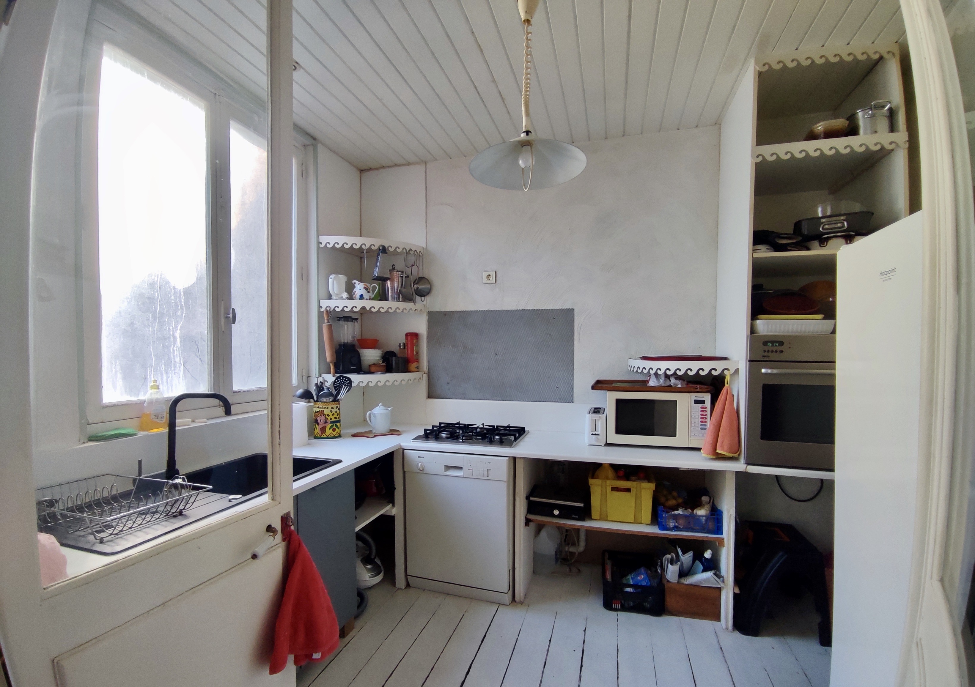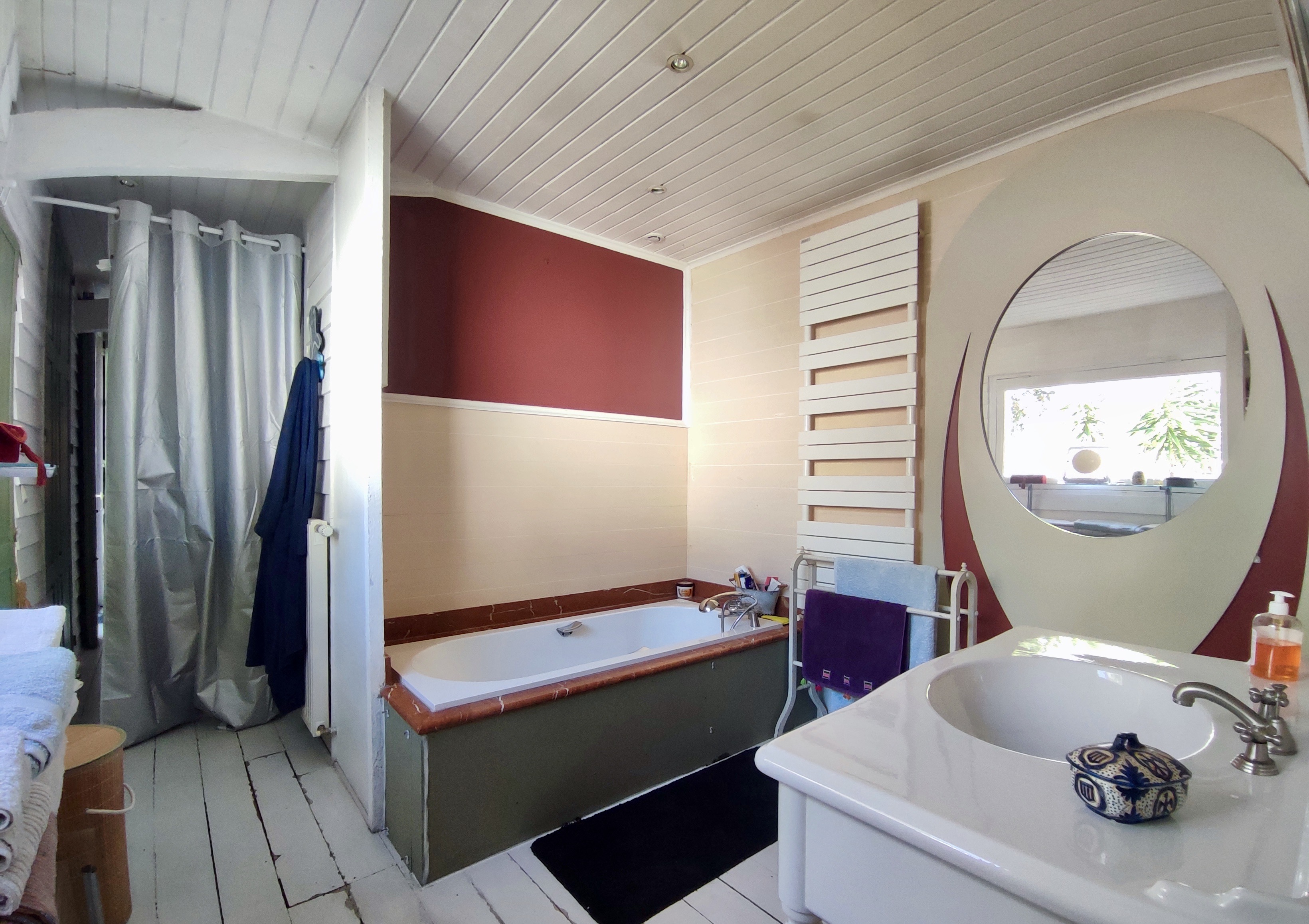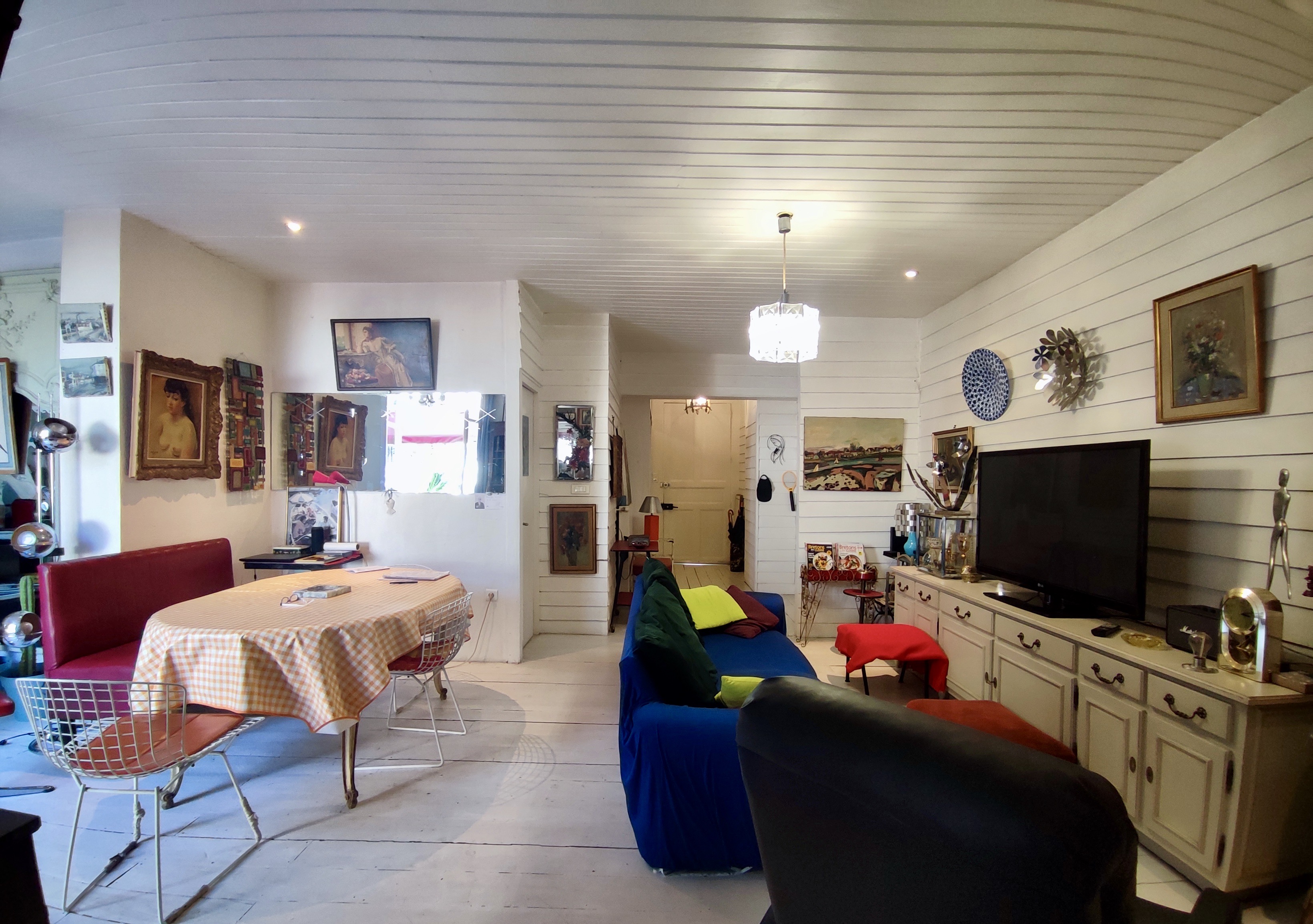 Un bien atypique à l’aménagement simple mais fonctionnel, offrant du calme, toutes les pièces étant orientées côté jardin, à l’abri des nuisances de la rue.