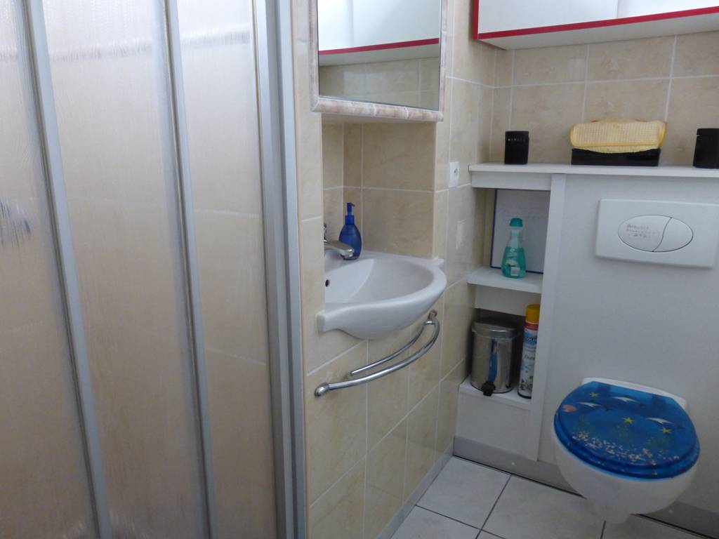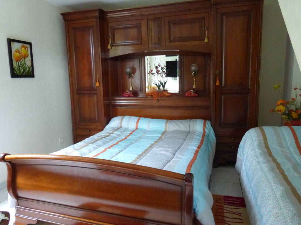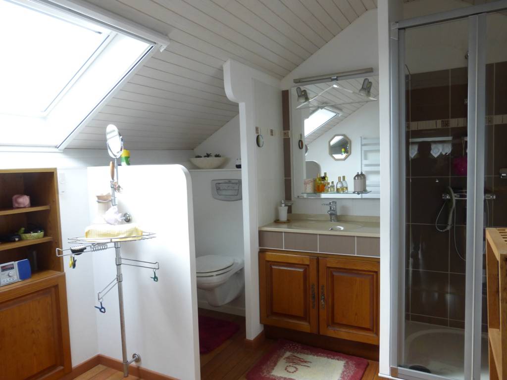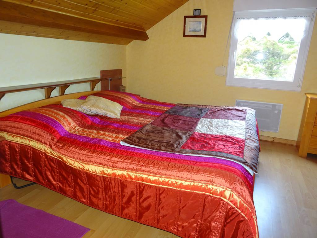 A l'étage : Chambre n°2 avec aperçu mer, un lit 160, TV, placard en sous-pente - Salle d'eau avec WC.