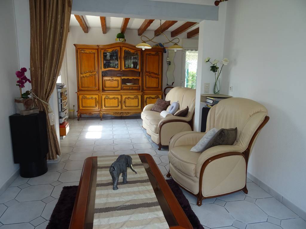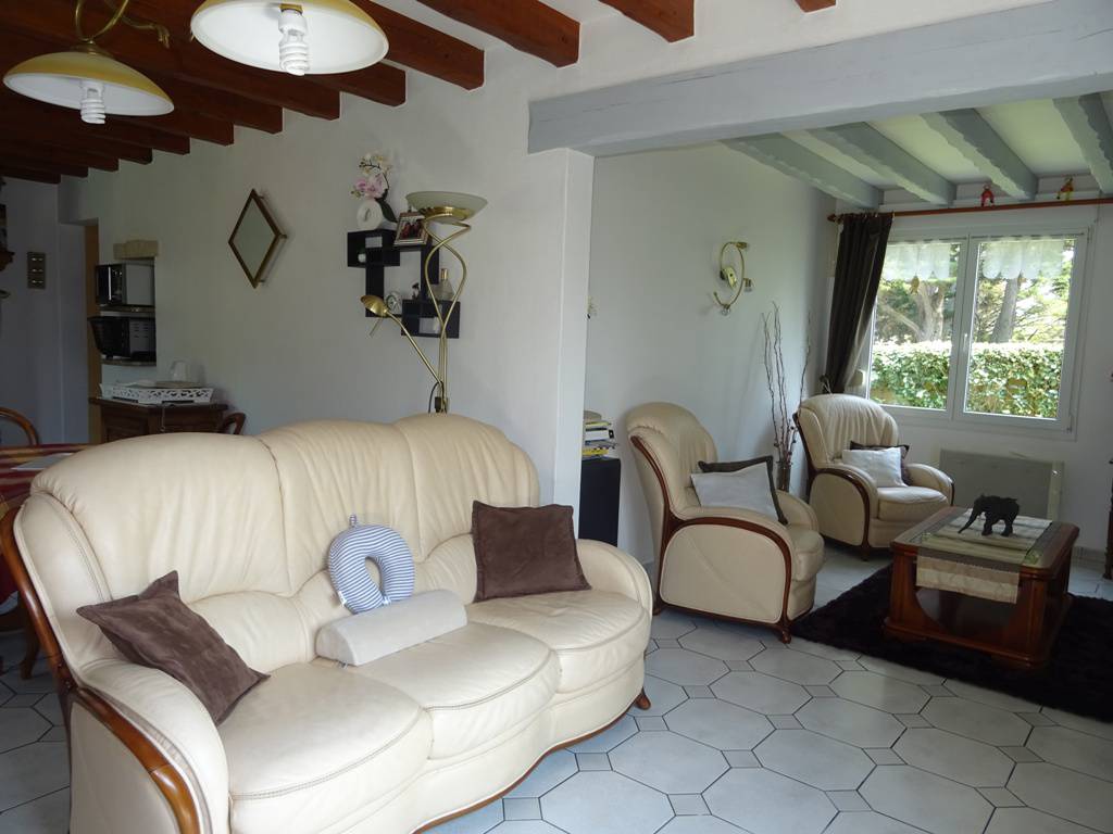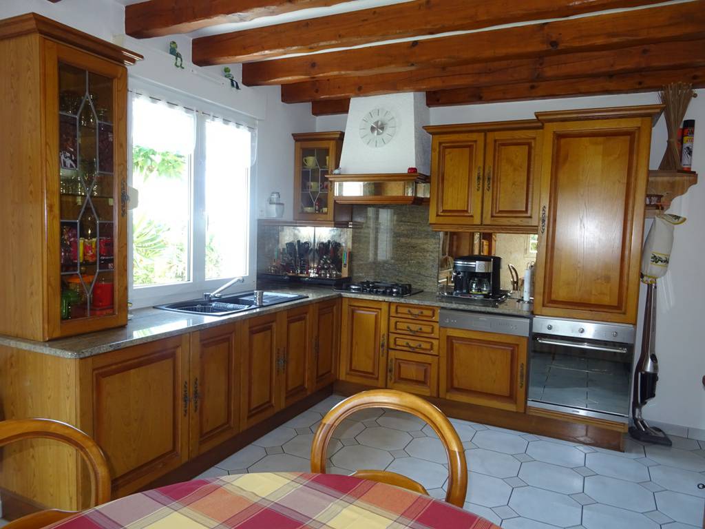 Salon-séjour de 30 m² avec table ovale 6 personnes, buffet, TV, canapé - Cuisine ouverte aménagée et équipée (four, micro-ondes, lave-vaisselle, réfrigérateur/freezer, mini-four, plaques 4 feux, hotte, cafetière filtre) donnant sur une terrasse sud avec espace repas extérieur - Chambre n°1 en rez-de-chaussée avec un lit 140 + un lit 90, TV, placard/commode - Salle d'eau avec WC.