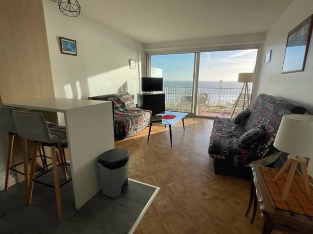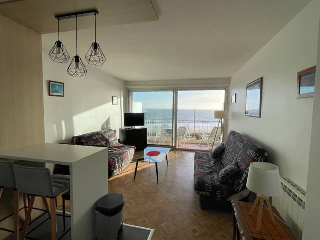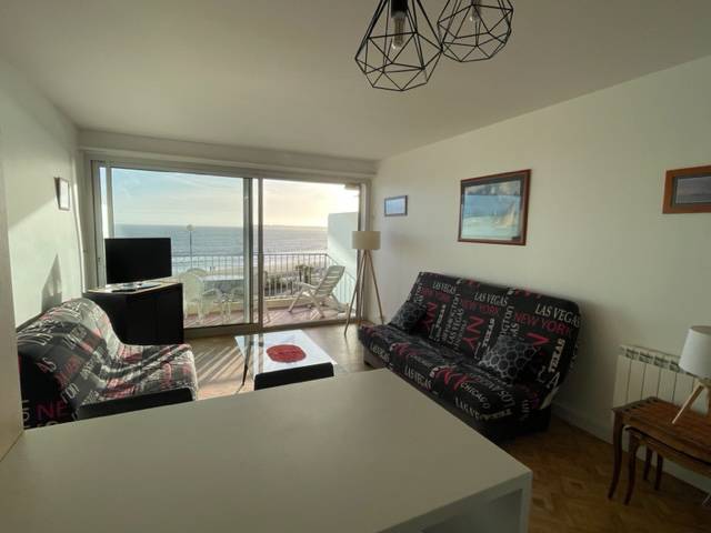 Studio situé au 2ème étage d'une résidence au coeur de la baie face mer - à proximité de l'avenue Lajarrige comprenant : Entrée avec placard penderie - Séjour avec canapé lit BZ 140/190 et canapé lit 120/190 et télévision écran plat ouverte sur belle terrasse face mer - Cuisine ouverte avec Plaques induction, Four multifonction, Réfrigérateur/Congélateur et lave vaisselle - Salle de douche avec WC.