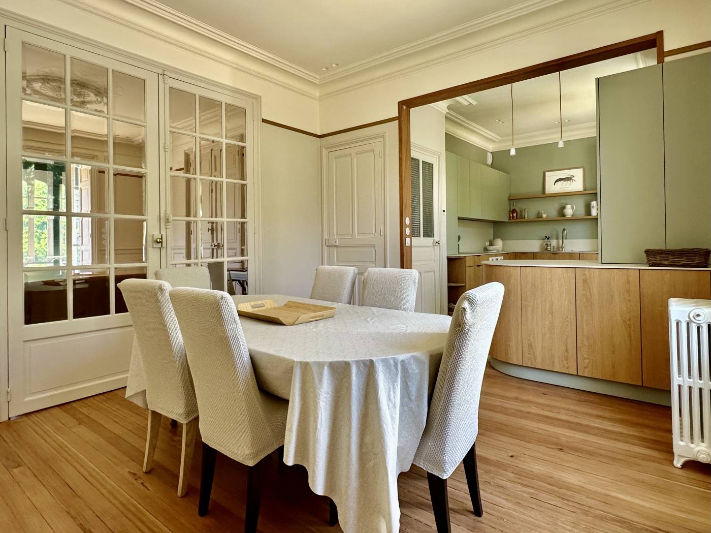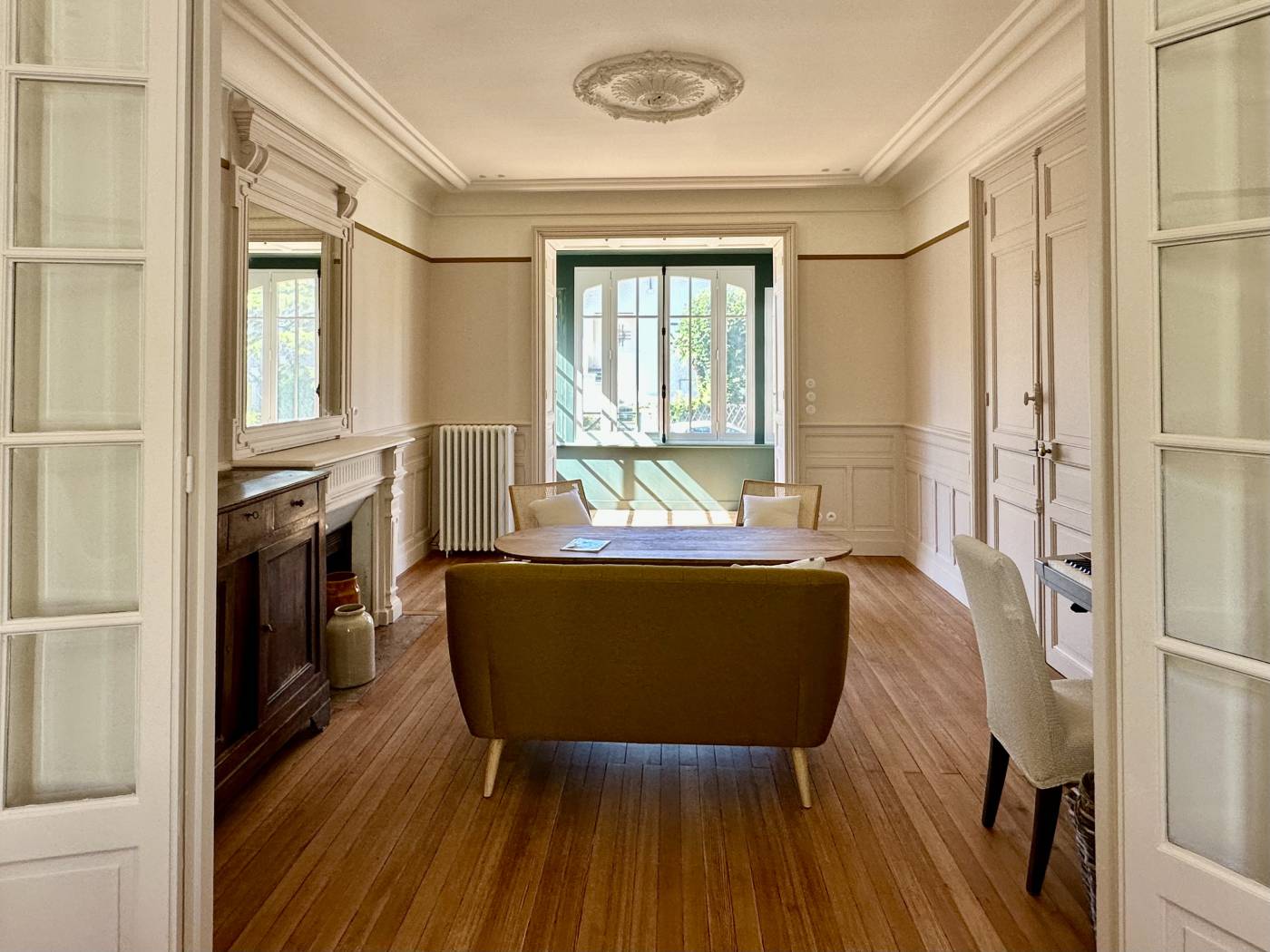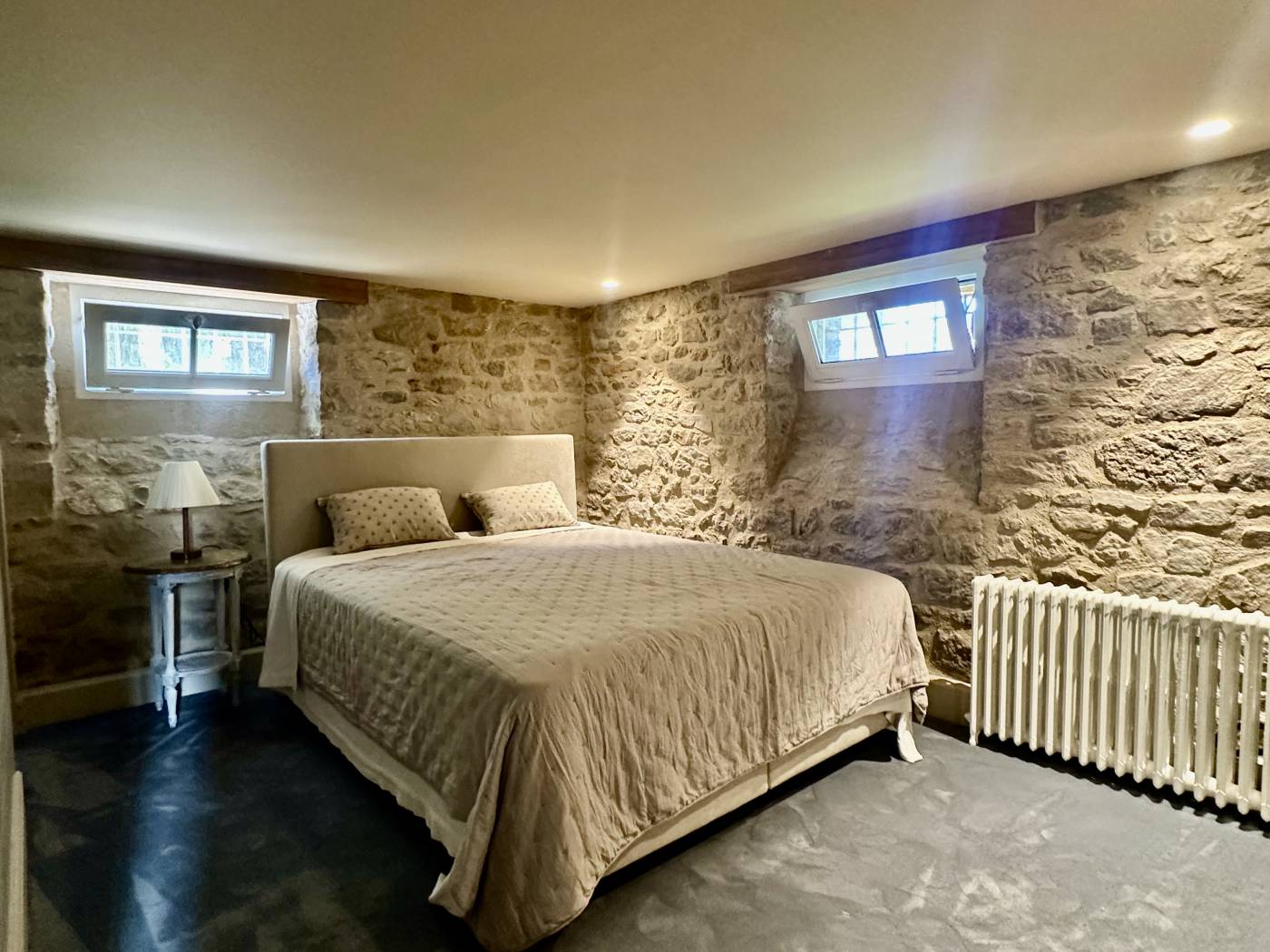 Vaste pièce de vie lumineuse avec salon (pas de télévision mais connexion internet), séjour et cuisine américaine entièrement équipée (hotte, four, plaque induction, réfrigérateur-congélateur, lave-vaisselle). WC invités.