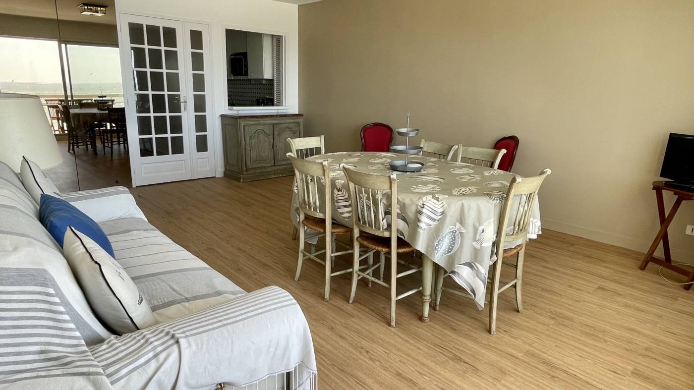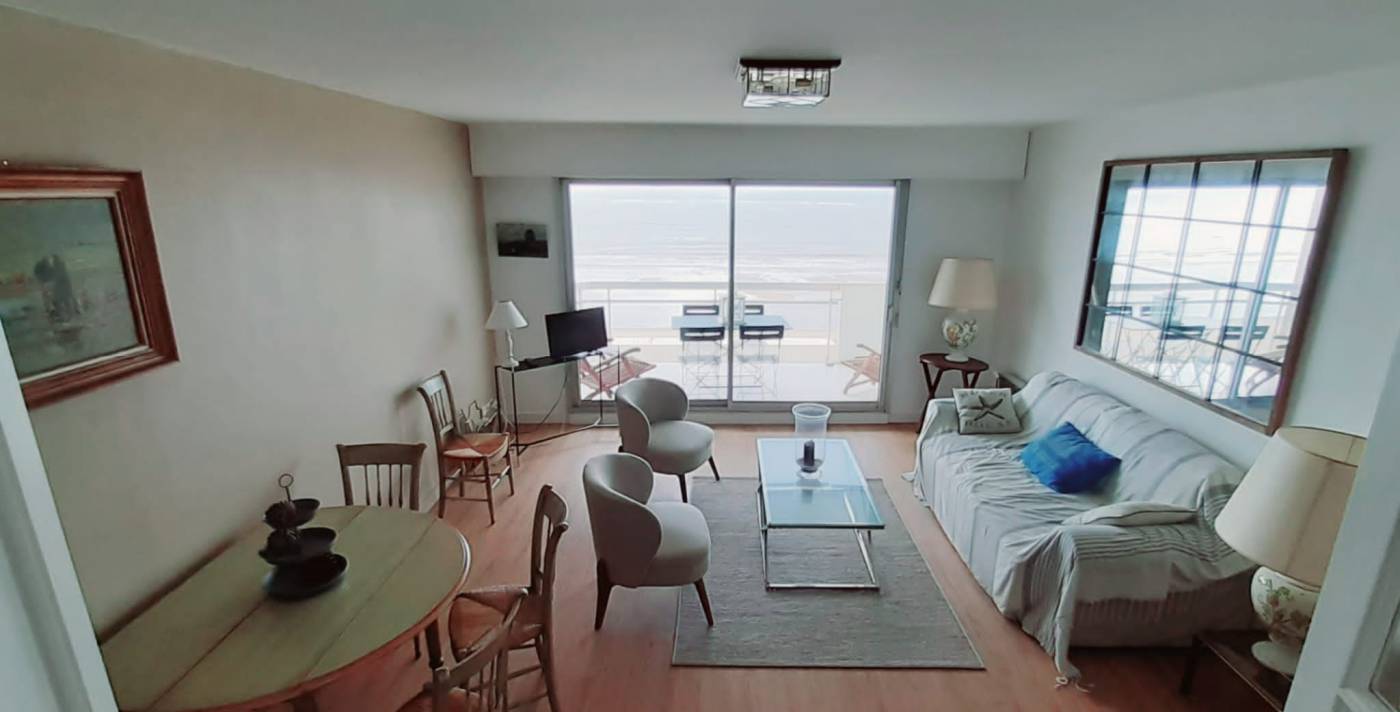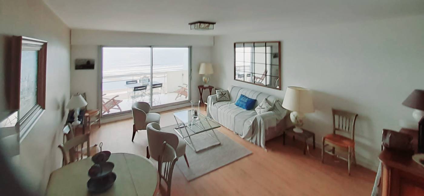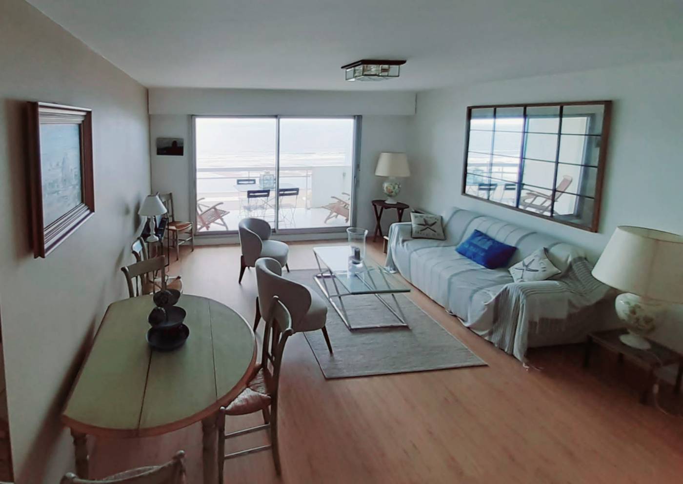 Appartement de 3 pièces Face Mer au 4ème étage avec ascenseur d'une résidence de standing offrant : Entrée - Salon/Séjour Face mer sur terrasse (TV) - Cuisine Semi-ouverte Aménagée et Équipée (Réfrigérateur/Congélateur - 3 Feux inductions - Lave Vaisselle - Mini four) - Chambre 1 avec lit en 140/190 sur l'arrière avec Balcon - Salle de Bain (Baignoire - Lavabo - Lave linge/Séchant) - Chambre 2 avec lit en 140/190 sur l'arrière avec balcon. Parking extérieur privatif. Numéro d'enregistrement : 440550003176F