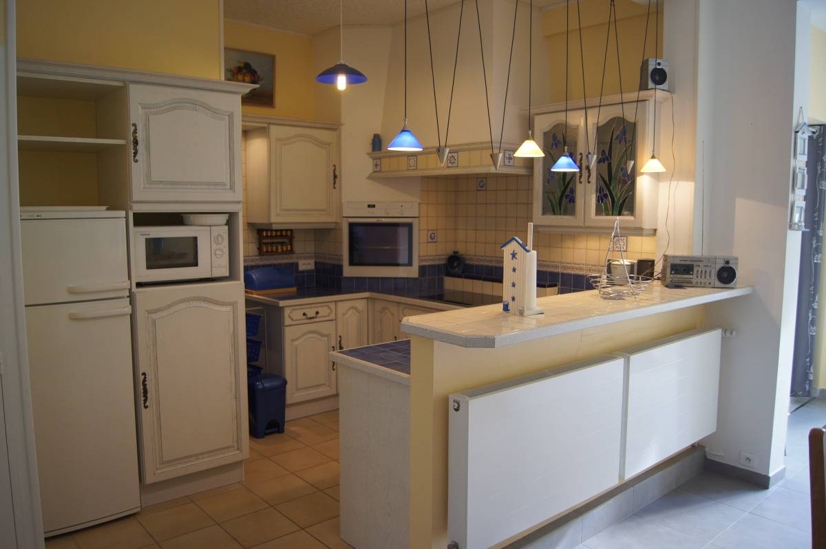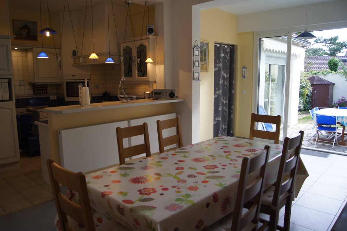Villa balnéaire avec Jardinet clos - comprenant au RDC : Entrée - Salon/séjour (TV) avec terrasse sur Jardinet - Cuisine ouverte aménagée/équipée (Four - 4 plaques induction - Mico-Ondes - Réfrigérateur/congel - Lave-vaisselles) - WC - Chambre n°1 avec lit 2 pers 160/200 - Salle de douche avec Lave-Linge. Etage : Chambre n°2 avec lits jumeaux - Chambre n°3 avec lit 140/190 et lavabo - Chambre n°4 sur terrasse avec lit 140/190 et lit bébé - Salle de douche avec WC - Garage. CONNEXION WIFI GRATUITE