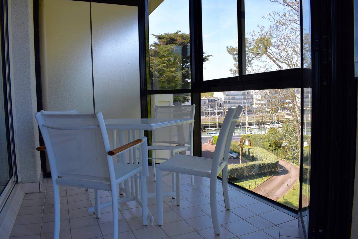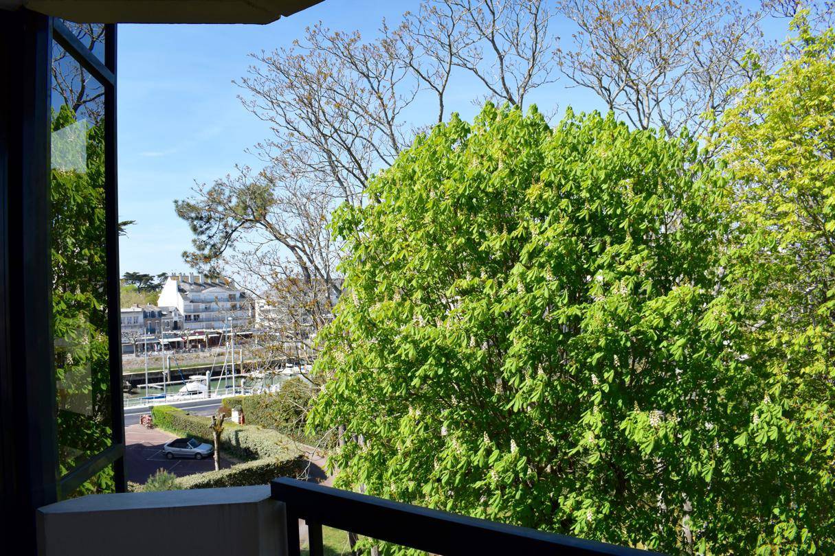 Donnant sur le jardin calme de la copropriété et offrant une petite vue sur le charmant port du Pouliguen, cet appartement de type 1 au 3ème étage d'une résidence face mer vous offrant également l'accès direct plage comprend :