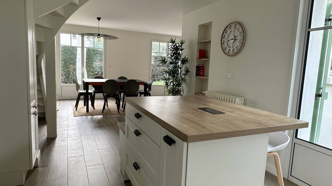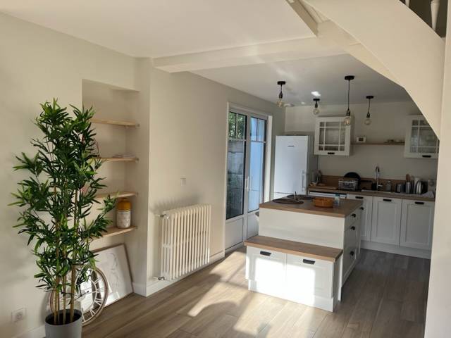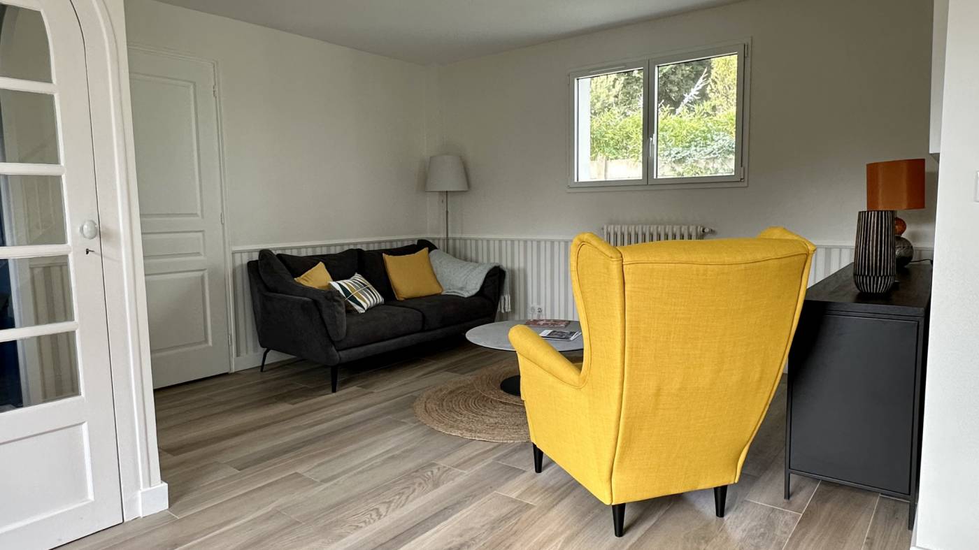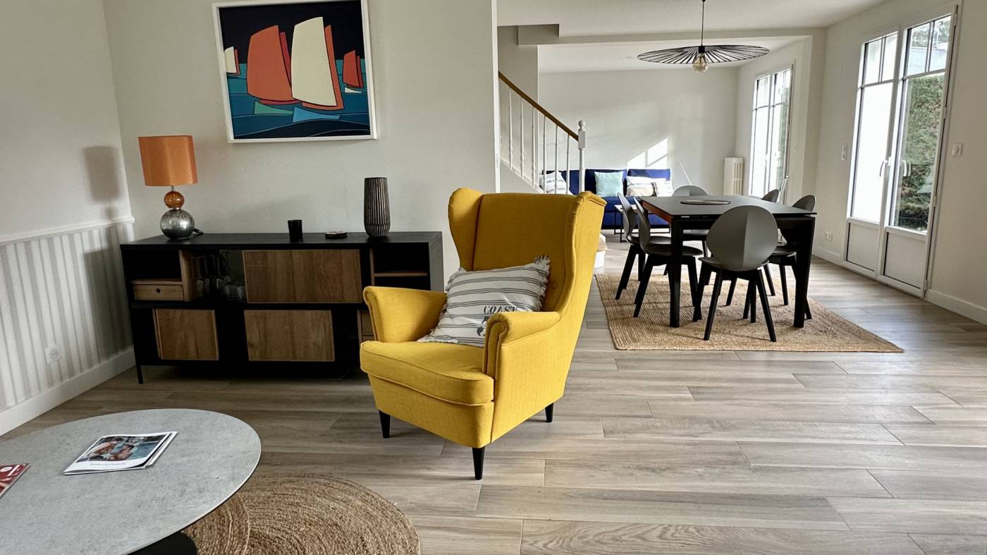 Elle comprend une entrée, une belle pièce de vie composée de 3 espaces, salon, cuisine avec espace repas (réfrigérateur/congélateur, lave-vaisselle, micro-ondes, cuisinière avec four et plaque, Nespresso, table avec rallonge) + accès garage avec lave-linge et sèche-linge, Salon tv avec canapé lit.