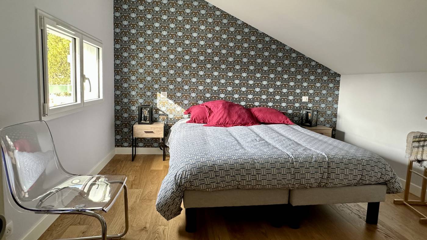 Au rdc de chaussée : espace nuit composé d'une Chambre n°2 avec lit 160/200, commode et lave-main - Salle de bain avec grande penderie et sèche-serviette - Chambre n°3 avec 2 lits 80/200 ou grand lit + douche et grand placard/penderie - Chambre n°4 avec 2 lits 90/190 superposés et commode donnant accès au jardin.