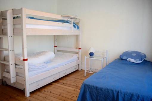 A l'étage : Chambre n°1 avec lit 140/190 + armoire - Chambre n°2 avec 3 lits 90/190 dont 2 superposés + placard - Salle d'eau avec WC. Connexion WIFI