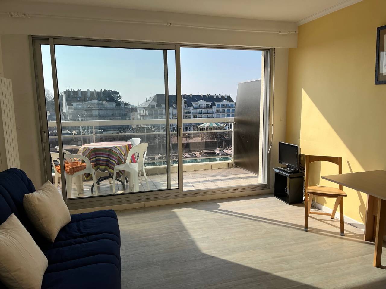 Venez profiter de la vue dégagée de ce studio sur le port et la mer - à 150 m de la Plage Benoit et à proximité immédiate des commerces et du marché du Pouliguen pour des vacances réussies !
