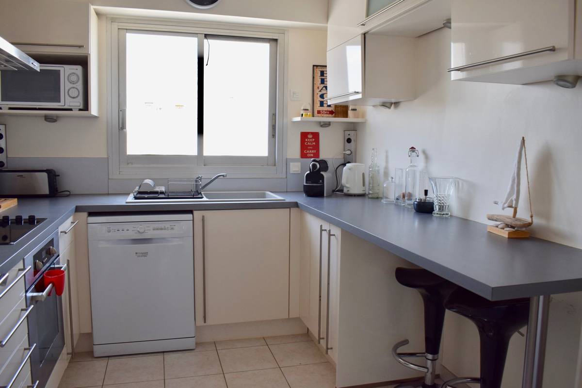 Emplacement idéal pour cet appartement situé au 4ème et dernier étage - comprenant : Entrée avec placard - Salon / séjour double (TV / DVD / Chaîne Hi-Fi) avec canapé lit en 160/200 ouvert sur grande terrasse avec vue sur la mer avec stores bannes et mobilier - Cuisine indépendante aménagée et équipée (plaque vitro - Hotte - Micro-ondes - Four - Réfrigérateur - Lave-vaisselle) - Dégagement - WC indépendant + lave-mains - Chambre n°1 avec 2 lits 90/190 + placards - Salle de douche - Chambre n°2 avec 2 lits 80/190 + placard - Salle de bains avec lave linge séchant - Parking en sous-sol. INTERNET WIFI. Numéro d'enregistrement : 4405500038921