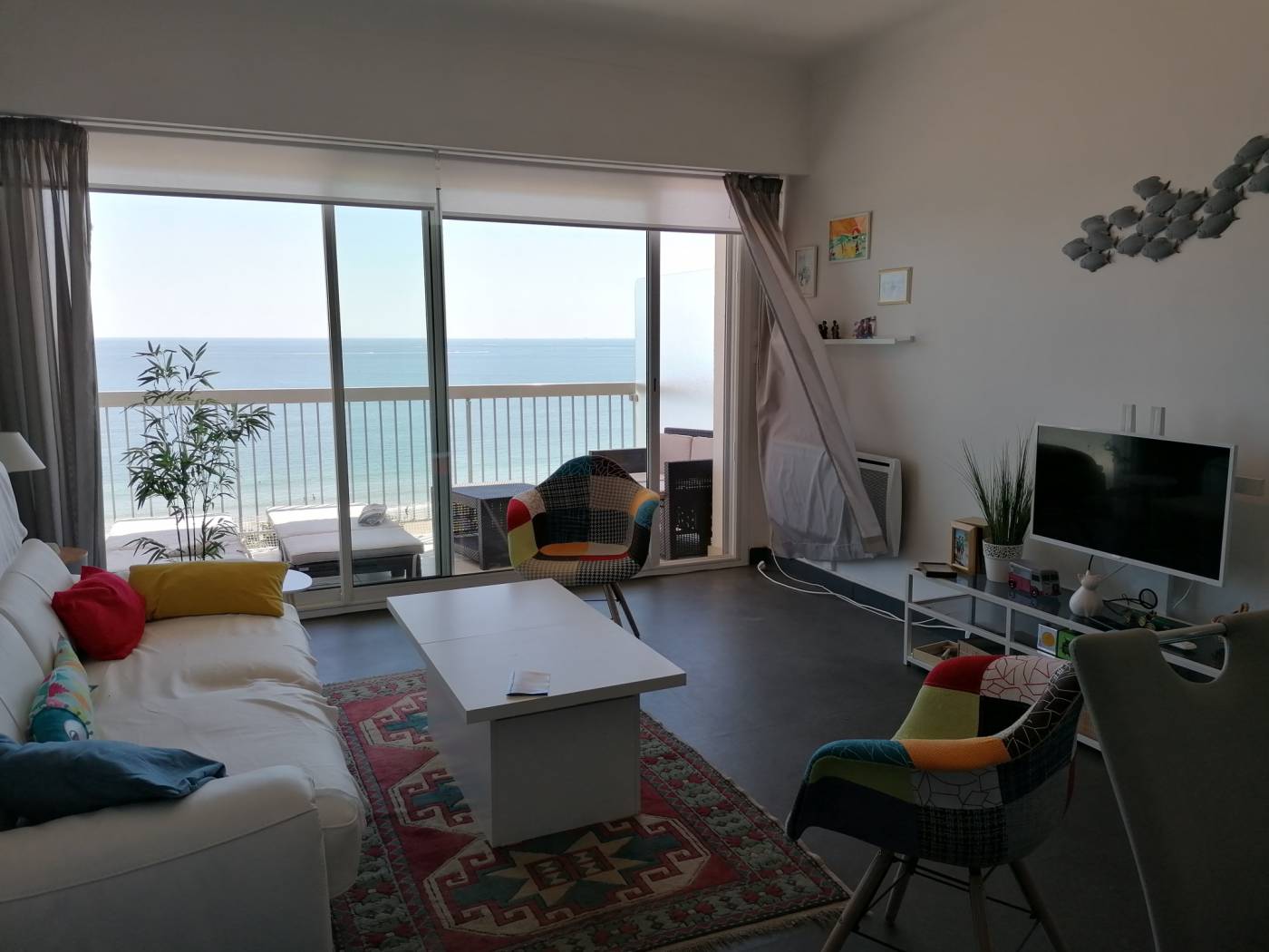 Dans le quartier du Casino et des grands Hôtels, à proximité du marché cet appartement au 7ème étage face mer comprend : Une entrée avec placards - Pièce de vie proposant canapé lit et TV écran plat avec Cuisine aménagée et équipée (Lave-vaisselle - Cuisinière - Micro-ondes - Nespresso - Grille Pain - Réfrigérateur avec freezer - cave à vin) donnant sur terrasse face mer avec 2 chaises longue et canapé - Chambre n°1 avec 3 lits superposé en 90/190 - Salle d'Eau avec lave linge - Chambre n°2 ouverte sur balcon arrière avec 1 lit en 160/190 + placard. Parking privé sécurisé en sous-sol. CONNEXION WIFI GRATUITE - N°MAIRIE : 4405500085779