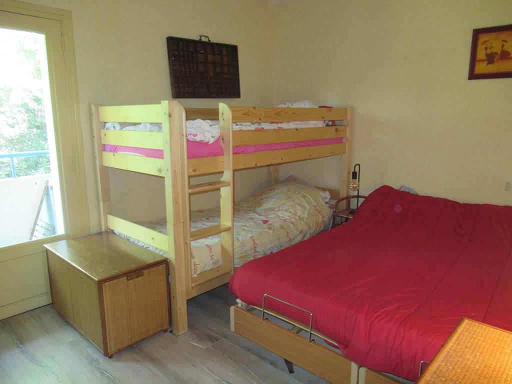 Une chambre avec armoire un lit superposé ( 2 x 90 ) et un lit double (160) donnant sur une terrasse Est (accessible par la cuisine également). Une salle de bain.