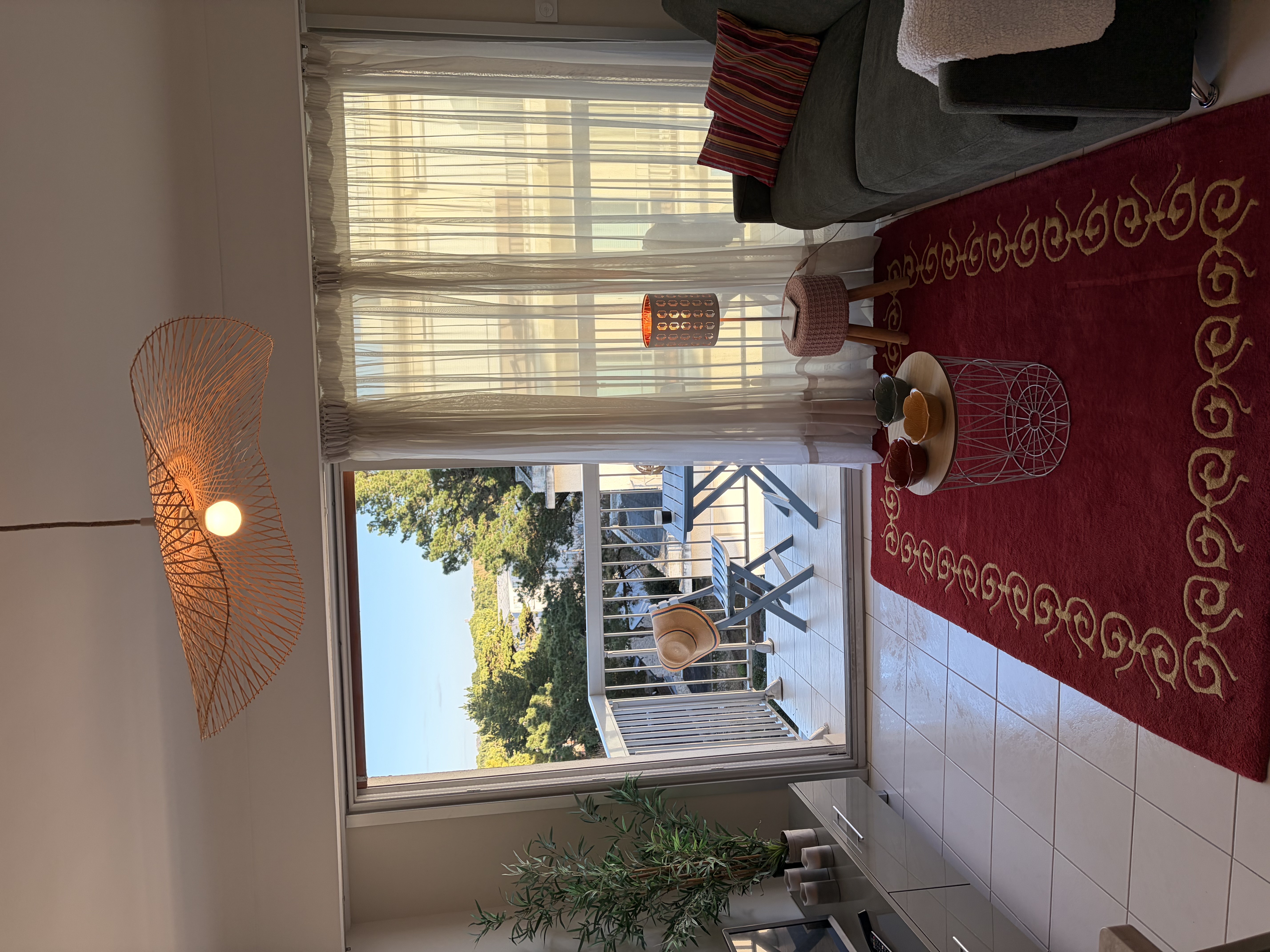 Cet espace se prolonge sur une terrasse exposée Est, idéale pour les petits-déjeuners, offrant une agréable vue latérale sur la mer.