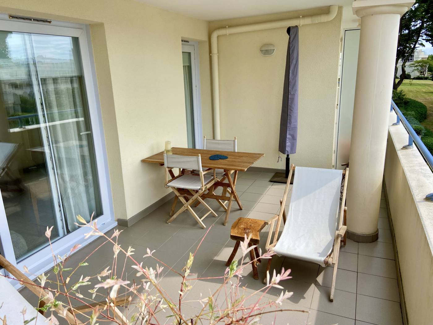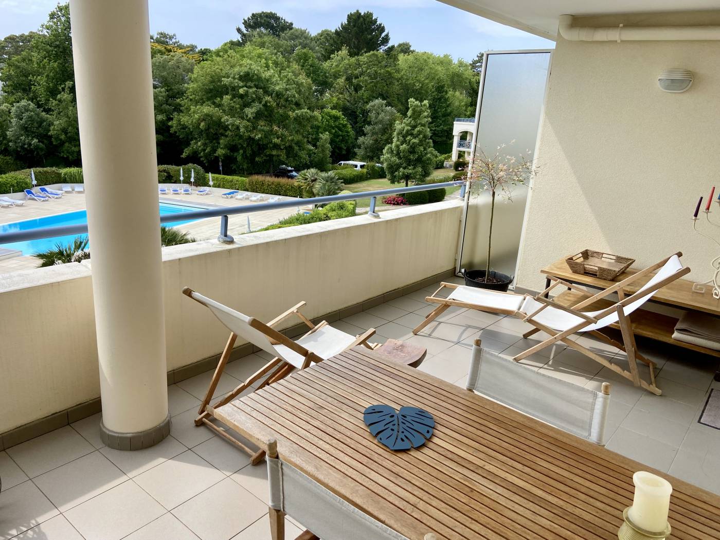 Profitez de la grande terrasse avec vue sur le parc et la piscine.