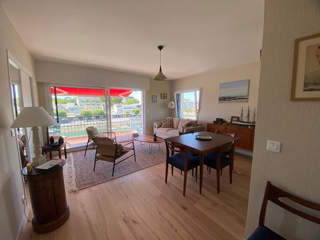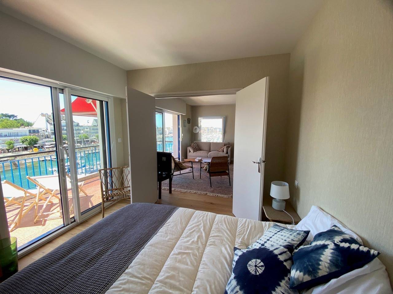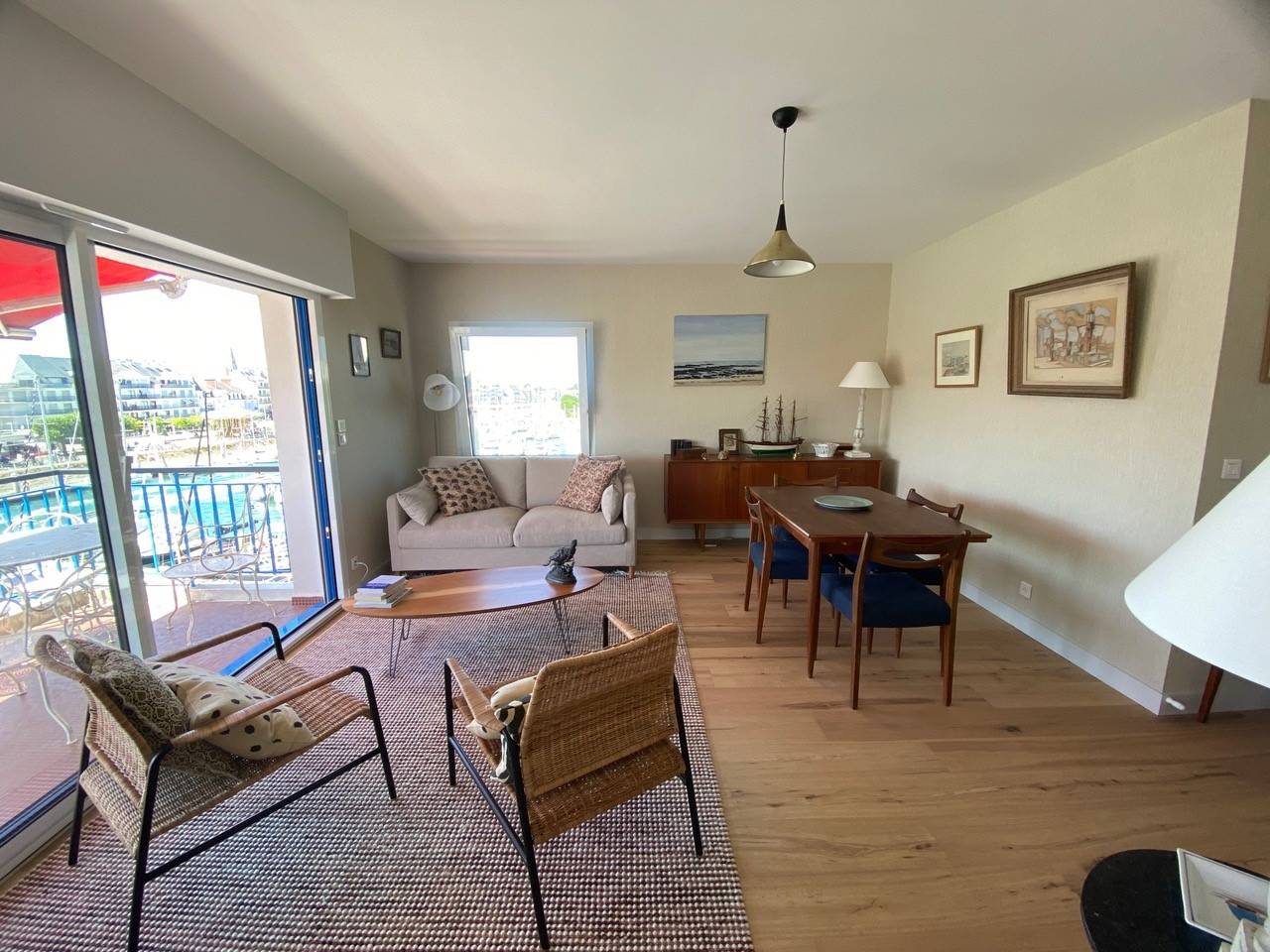 Dès l'entrée, ressentez l'accueil chaleureux, prélude à des vacances exceptionnelles. Le salon/séjour, baigné de lumière, s'ouvre sur une terrasse (Store Banne) offrant une magnifique vue sur le port, agrémenté d'une TV écran plat pour des moments de détente. La Cuisine est indépendante A/E (Four - Plaque - Micro Onde - Lave vaisselle - Réfrigérateur - Lave Linge séchant - Cafetière - Bouilloire et Grille Pain).