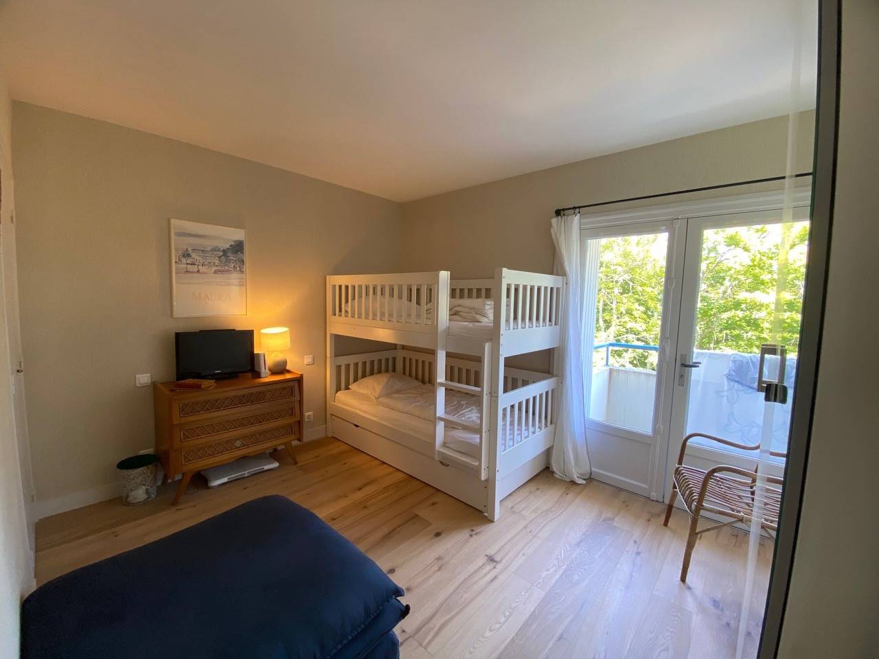 La chambre principale, élégante, vous invite à vous détendre dans un lit double (140/190), avec un accès à la terrasse offrant une vue imprenable sur le port et la chambre ludique, équipée d'un lit superposé (90/190) et d'un lit tiroir (90/190), est idéale pour les plus jeunes. Une Salle de Bain et WC ind complète ce bien.