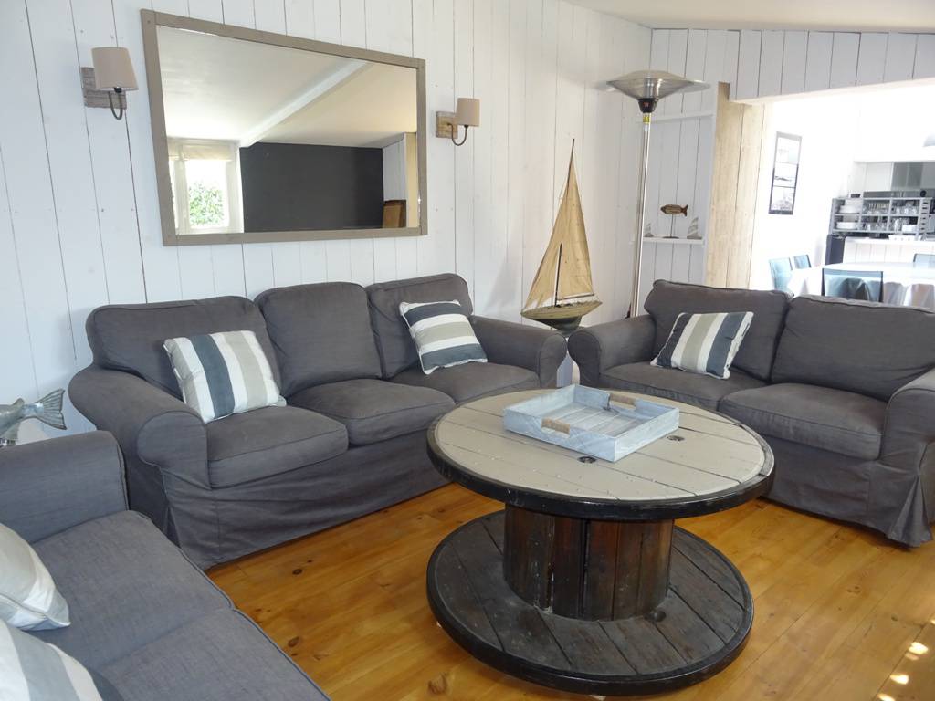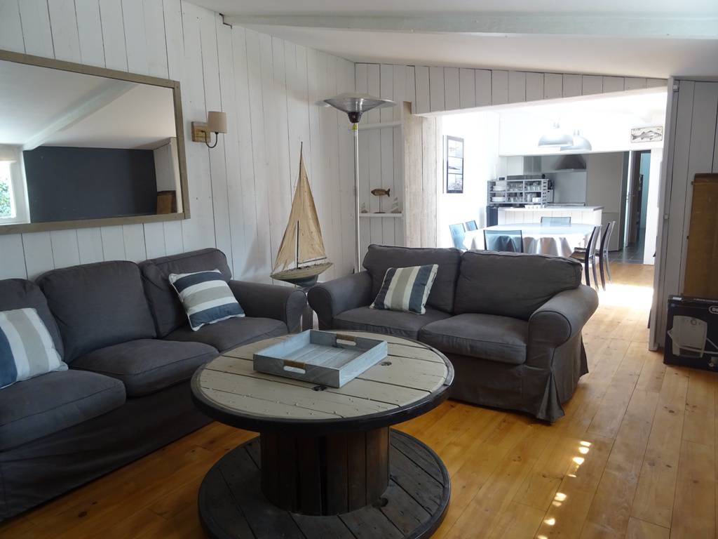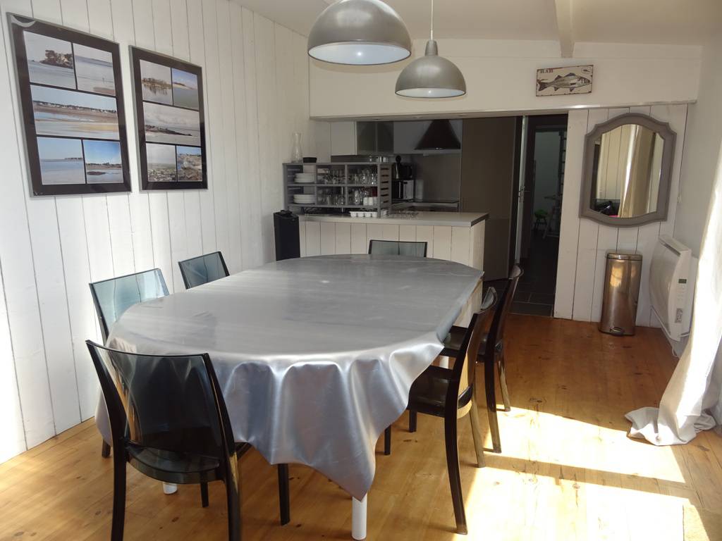 Elle dispose : - Salon de télévision (TV et canapé) - Pièce de vie donnant sur la terrasse et le jardin (3 canapés, grande table dinatoire) - Cuisine équipée et aménagée (4 plaques induction, hotte, four, micro-ondes, lave vaisselle, réfrigérateur, congélateur, cafetière filtre, machine expresso) - Buanderie (réfrigérateur/congélateur, lave linge, sèche linge)- Chambre n°1 (lit 180) - Salle de bain (double vasques, baignoire et sèche serviette) - Chambre n° 2 (lit 180) - Chambre n°3 (2 x 2 lits superposés) - Mezzanine dortoir (2 couchages de 90) - Salle d'eau - 2 WC indépendants