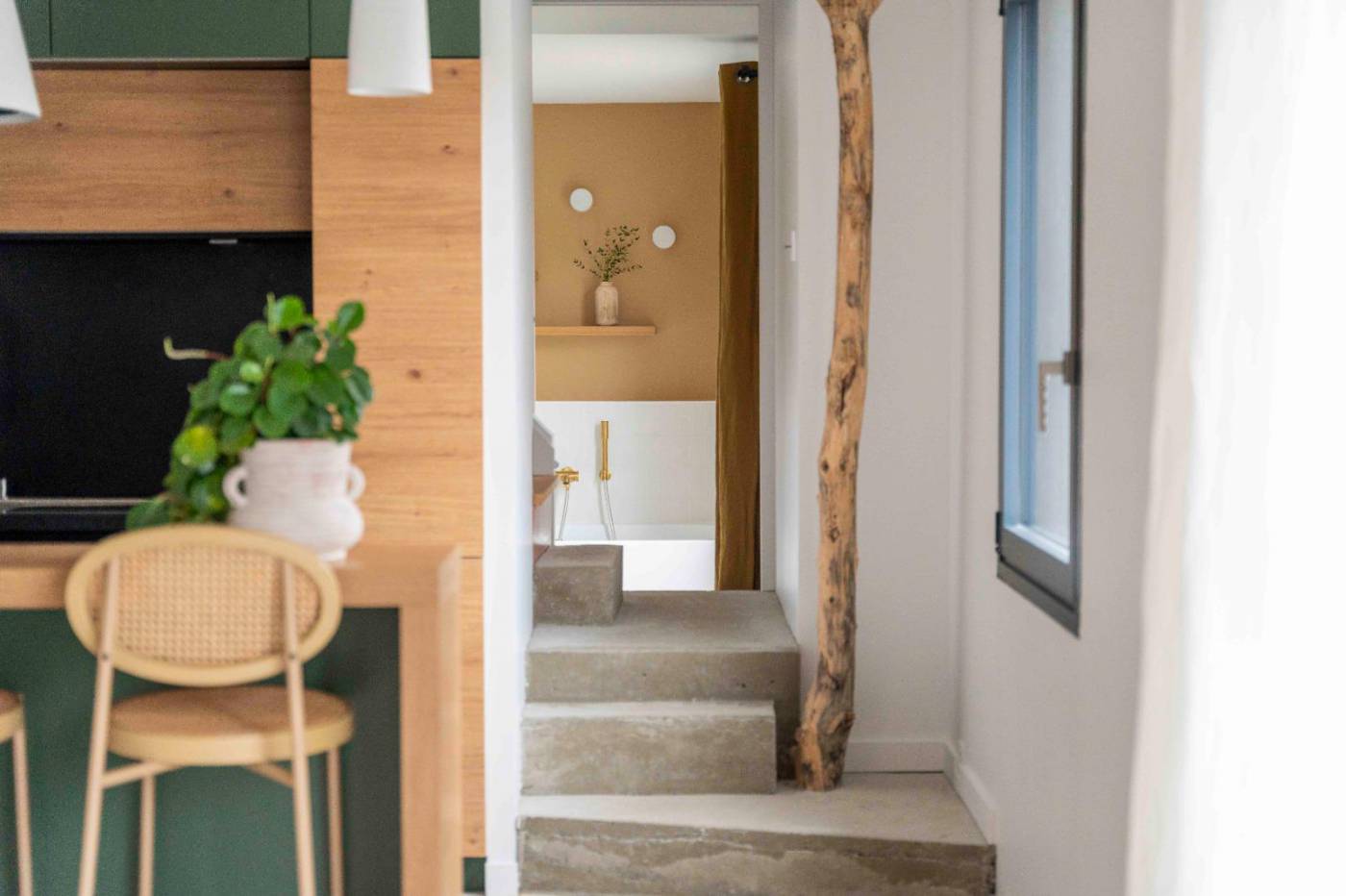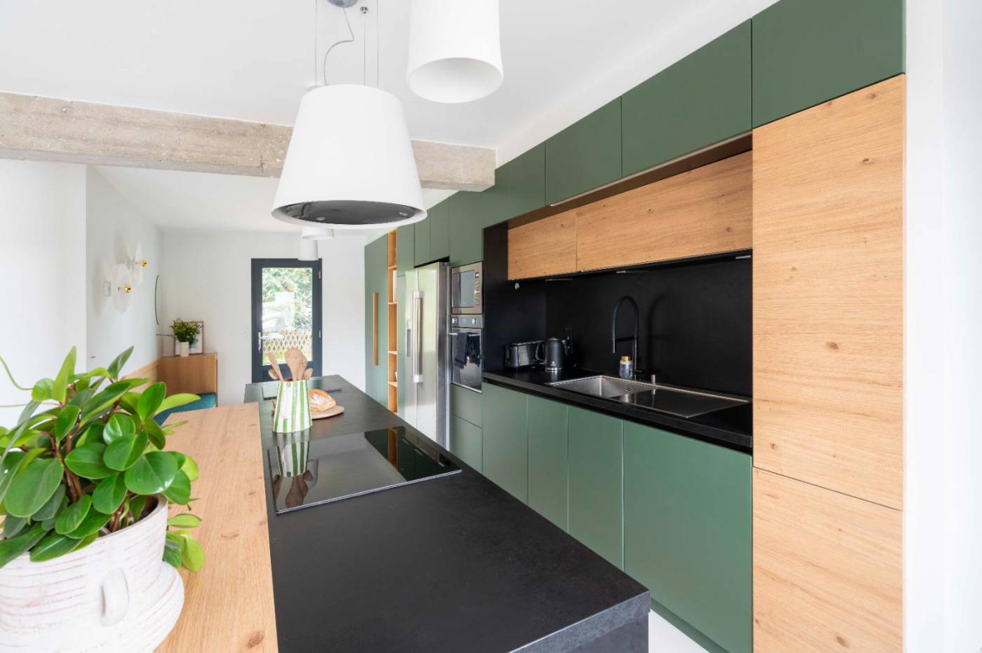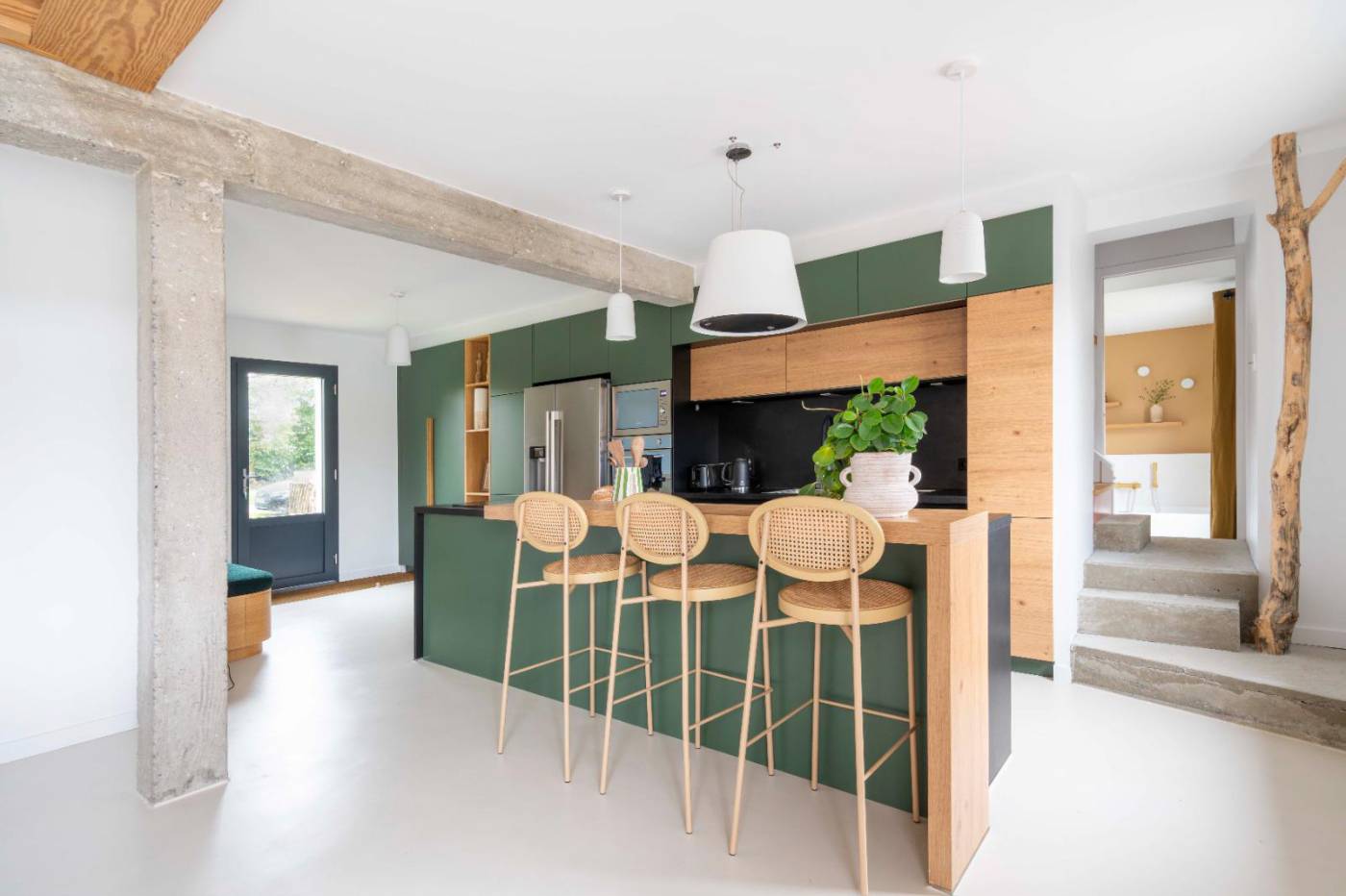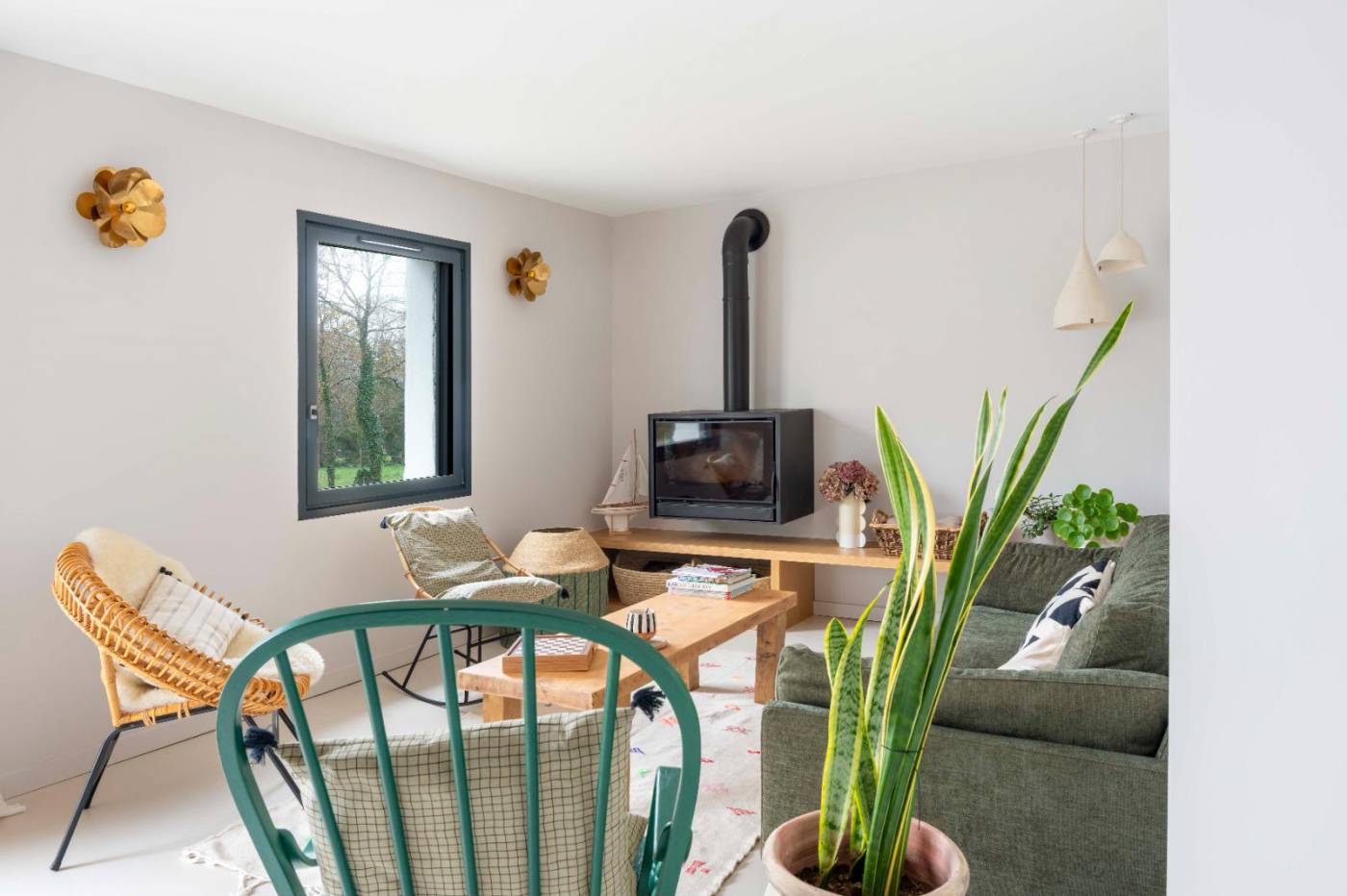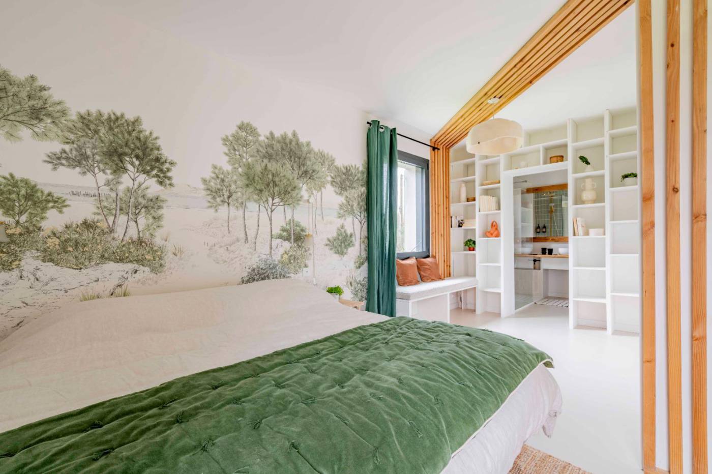 Elle dispose d'une entrée - Pièce de vie sur jardin - espace salon cocooning avec poêle à bois donnant accès à la terrasse et à la piscine - Cuisine ouverte (réfrigérateur/congélateur, micro-ondes, four, lave-vaisselle, plaque induction, Nespresso) - WC indépendant - Chambre 1 : lit 180/200 + dressing + salle d'eau - Chambre 2 : lit 160/200 + placard + dressing + espace bain avec lavabo donnant sur terrasse